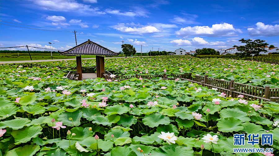 盛夏时节,武汉市江夏区法泗街超2.6万亩荷花进入盛花期。空中俯瞰,不同颜色不同品种的荷花随风摇曳,扮靓了美丽乡村。