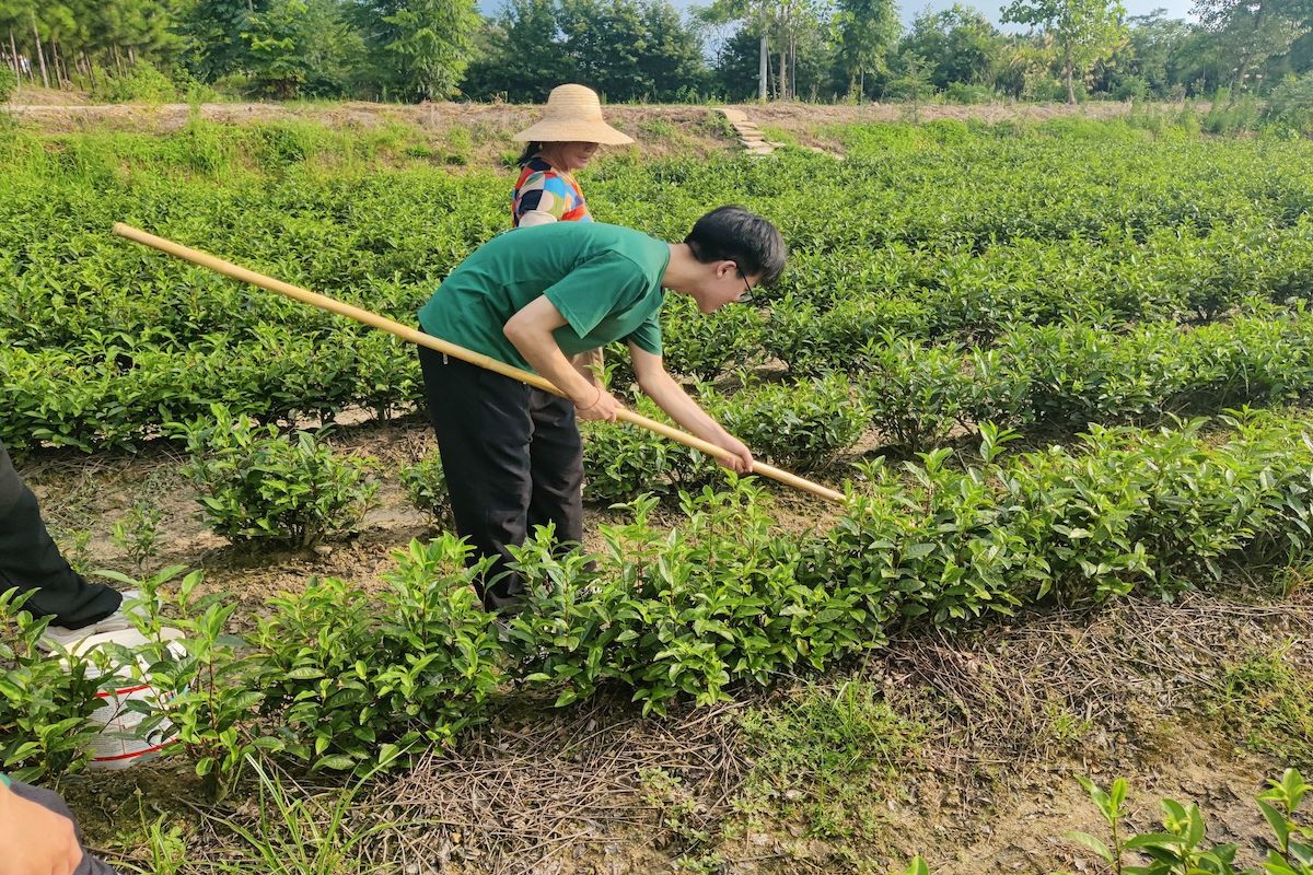 实践团成员深入茶园,向园间的村民请教茶叶种植的相关知识,并下地进行除草劳作。实践团成员邱宝说道:“平时少有下地进行农耕,烈日当空下进行劳作,让我切实感受到了劳动人民的辛苦,结合信息、自动化技术打造自动除草、施肥的智慧农业系统将为农村耕种提供极大的助力,让我认识到计算机技术下沉到基层的重要意义。”