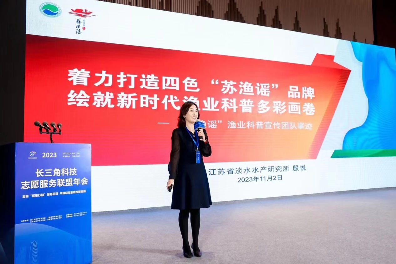 会上公布了江苏省2023年度长三角优秀科技志愿服务组织26个。江苏省淡水水产研究所的渔业文化科普团队——“苏渔谣”渔业科普宣传团队光荣上榜。